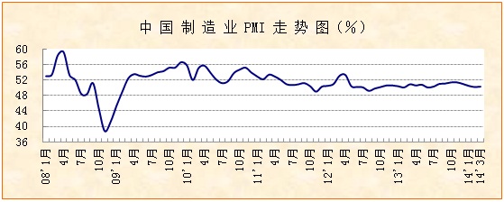 中国物流与采购联合会、国家统计局服务业调查中心发布的2014年3月份中国制造业采购经理指数(PMI)为50.3%,较上月微升0.1个百分点。该指数结束连续三个月回落,新订单、生产等主要分项指数均有小幅回升,但回升幅度低于往年同期水平,反映出指数回升力度有所偏弱。