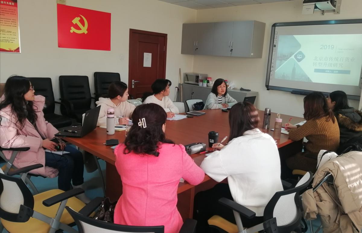 本次沙龙共分为两个环节,第一个环节是发言环节。赵娴教授以“传统百货业转型升级路径研究”为题,进行主题发言,系统介绍了北京市传统百货的发展环境、当前百货业存在的现状与问题,对“王府井商圈”进行了案例分析,并提出了传统百货业的转型路径、方案以及政策建议。同时,针对如何开展学术研究和撰写学术论文,提出了切实可行的建议。王琦同学以“生产性服务业与制造业生产效率提升效应的实证分析”为题,对我国制造业发展现状以及生产性服务业影响制造业效率等内容进行了汇报。