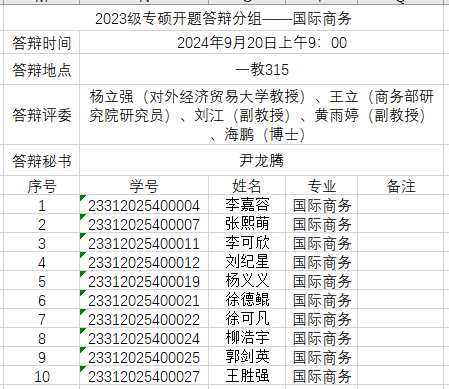 按照研究生院总体工作部署,beats365采取线下方式开展2023级两年制国际商务硕士研究生及2023级两年制金融硕士研究生学位论文二次开题答辩工作,具体安排如下: