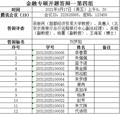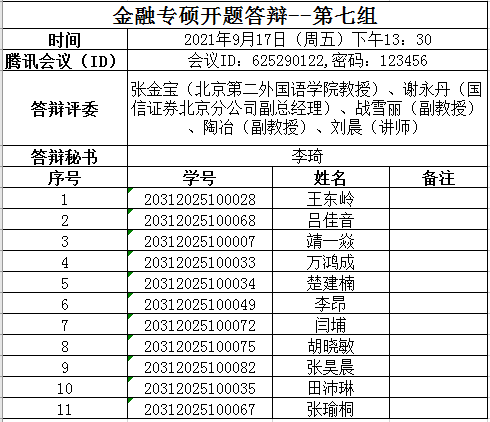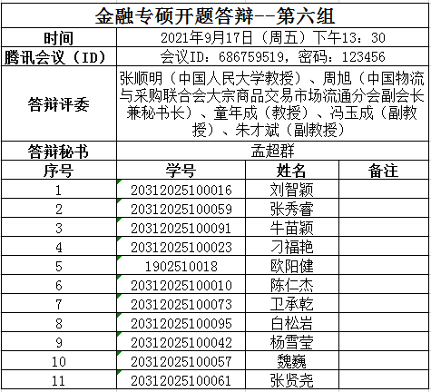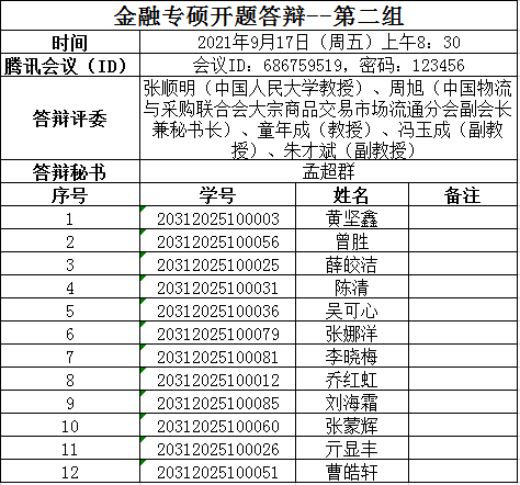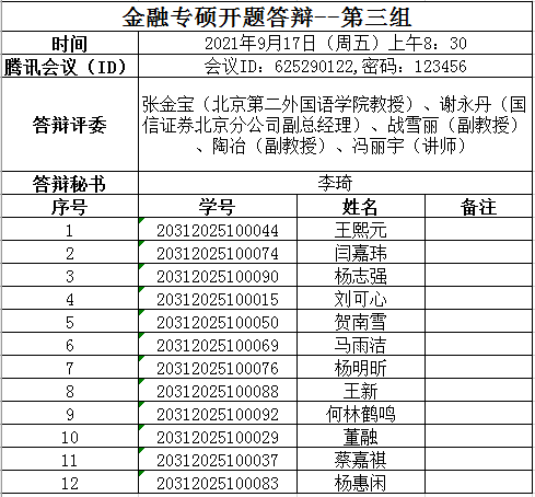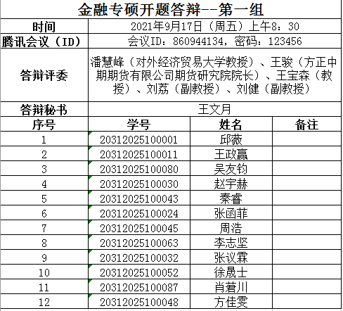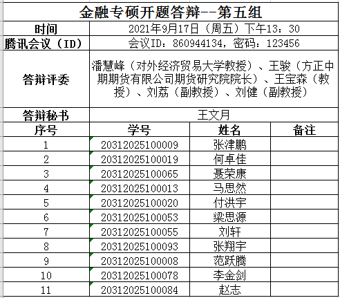 为落实公司关于疫情防控工作要求,在总体公司产品计划保持不变的原则下,根据《关于组织2020级金融专硕研究生学位论文开题考核的通知》(/info/1392/9918.htm)相关安排,按照研究生院总体工作部署,beats365采取线上视频会议的方式开展2020级两年制金融硕士研究生学位论文开题答辩工作,具体安排如下:
