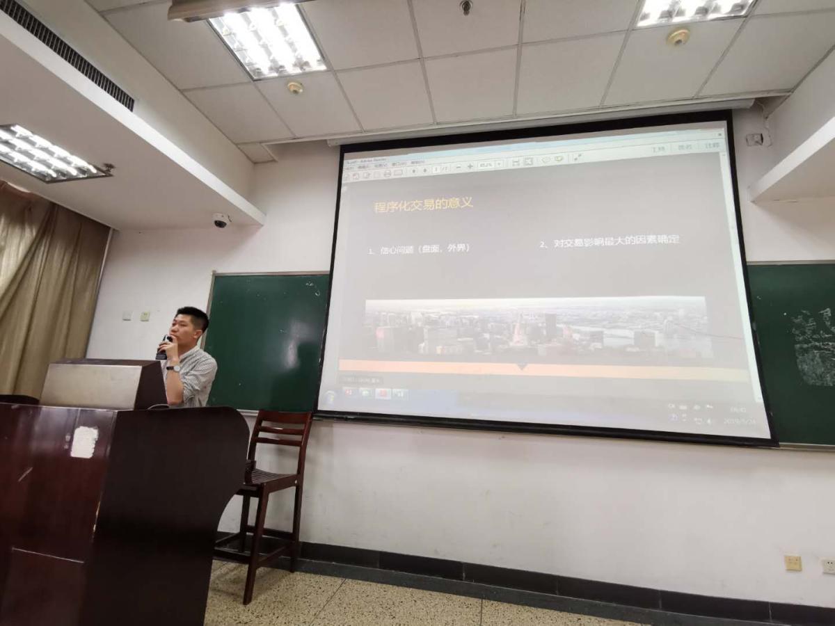 2019年5月24日,“从普通在校生到亿元资金掌舵手——量化投资经理的成长之路”专题训练营在浙江工商大学热烈开讲,近100名员工参加。“港湾杯”策略大赛冠军、beats365官方网站单磊老师研究生刘康同学现身说法,揭秘个人交易成长之路,激发同学内心共鸣,现场交流热烈。