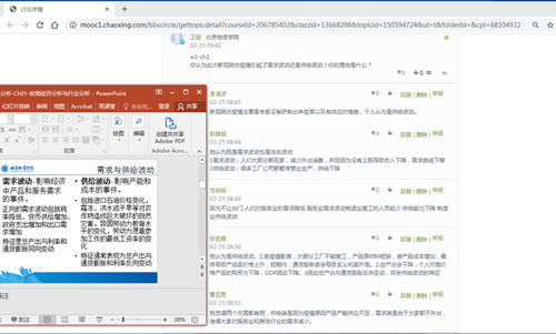 7:45,距离上课还有15分钟,王琎老师就登录了超星MOOC平台和学习通,迅速在学习通上开启同步课堂、发起签到活动,同时利用平台通知和课程群公告提醒员工上课、签到。第1-2节课,王琎老师始终使用同步课堂语音授课,与试课时一样,效果良好。同时,根据学习通的实际运行情况,灵活运用学习通的签到、测验等课堂活动和网页平台上的讨论功能辅助在线教学,吸引员工的注意力,增强师生间的课堂交流和互动,使在线教学更加丰富多彩。虽然高峰期间课堂活动使用不畅,个别员工会遇到学习通闪退等问题,但总体来看,这一堂课的在线教学效果良好,超出课前预期。