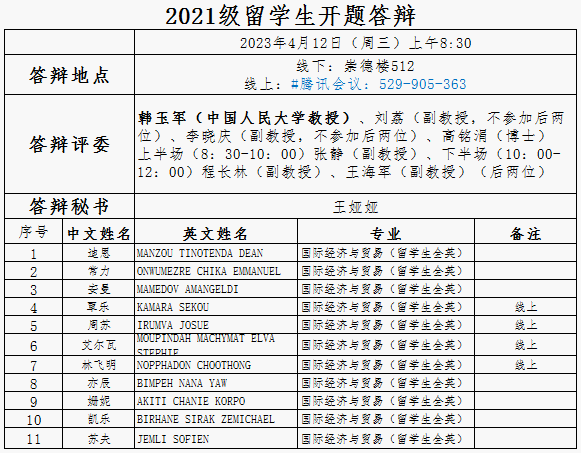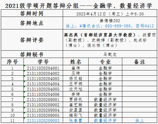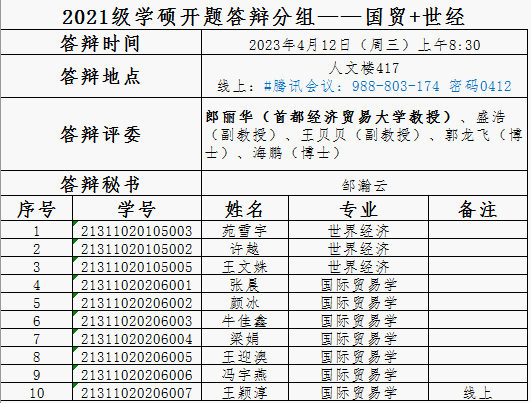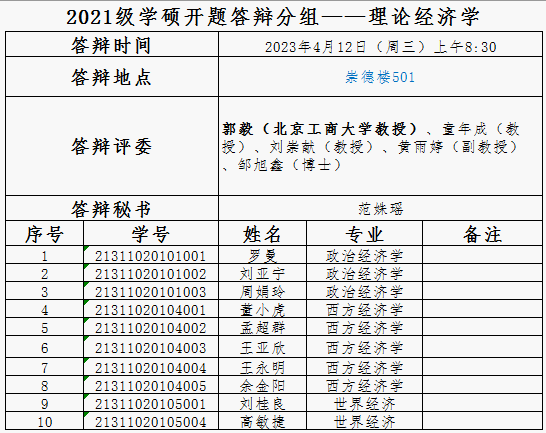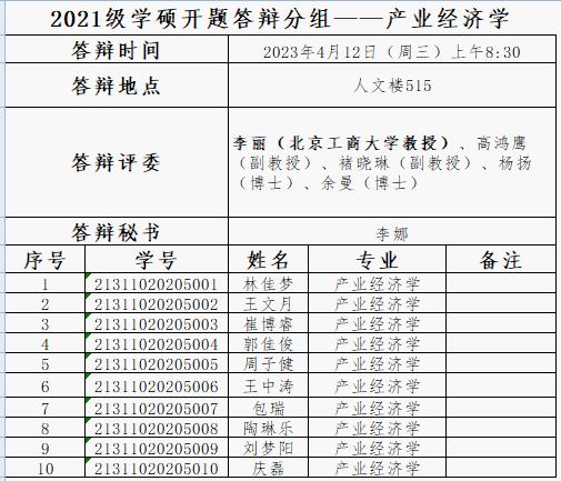 2021级研究生、职工答辩分组公示
