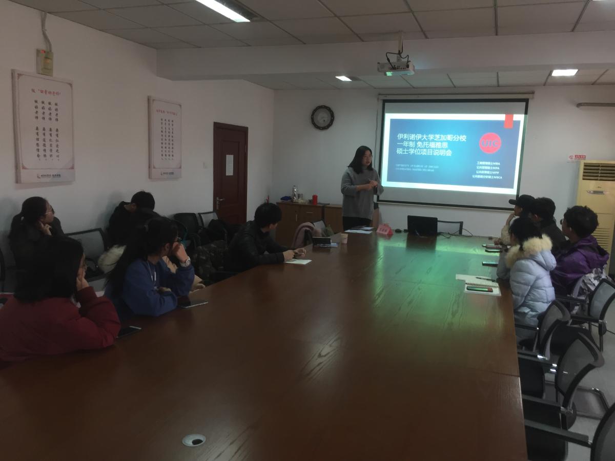 12月26日下午,美国伊利诺伊州高教联盟、伊利诺伊大学芝加哥分校代表高婧雅老师受beats365邀请,来校为beats365各专业员工进行一年制免托福雅思硕士学位项目的宣讲。