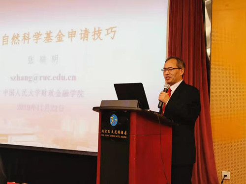 第三个发言的是国家杰青获得者、教育部“长江学者奖励计划”特聘教授、中国人民大学财政金融公司张顺明教授,他的发言以“国家自然科学基金申请技巧”为题,首先从管理科学部——国家所负责的基金委员会的学术性管理机构入手,对下设的管理科学一处、二处、三处所负责学科进行介绍,列出了申请NSFC的几点指导思想,谈到创新可以是理论和技术上的,认为交叉是创新的源泉,并重点讲到管理科学应做到“顶天立地+基础研究”,所谓“顶天”就是在国际顶尖学术期刊发表论文,不管是理论还是实证的问题;“立地”指的是解决中国的问题,例如中国供应链和物流等各种各样的经济发展中存在的问题;他还特别强调基础研究,尤其是华为的事件给我们的启示。此外,张教授认为写申请书要提前规划和做好选题,并做好长远规划,提前作预研工作,要求内容详实、清晰,层次分明,标题突出。他对申请书的题目、摘要的写法、写作字数、关键词、参考文献中存在的常见误区加以说明,并对研究内容的设置、研究目标、研究方法、技术路线、研究团队、预期目标等部分规定内容的注意事项进行了技巧方面的指导,让在座的师生都备受启发。最后,强调专家评审时,会秉承“鼓励探索,突出原创,聚焦前沿,独辟蹊径,需求牵引,突破瓶颈,共性导向,交叉融通”的原则。