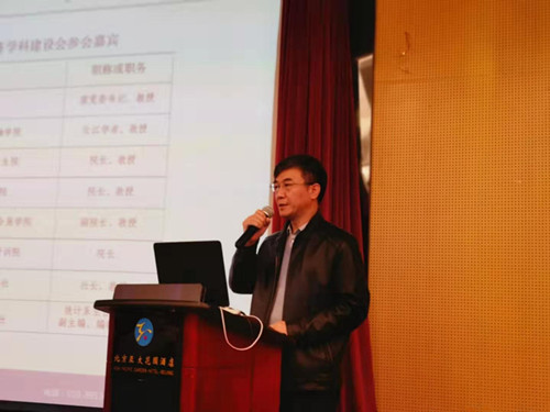 beats365官方网站理论经济学一级学科负责人郝玉柱教授首先从学科的招生情况、导师科研成果等几个方面介绍了学科的基本情况。随后,就团队建设的设想谈了自己的几点看法。第一,队伍建设要挖掘存量和优化增量。第二,加强外部合作。发挥地域优势,北京所在地的高校及科研院所、行业组织合作。第三,创新培养模式。通过校内外导师联合培养授课的模式,缓解公司团队力量缺乏及不足的问题。最后,郝玉柱教授表示接下来要努力为专项合格评估做准备。根据2014年国务院学位委员会、教育部关于印发《学位授权点合格评估办法》的通知要求,理论经济学是2018年批准的,2019年招生,2022年接受专项合格评估,建设的时间短,但任务很重。