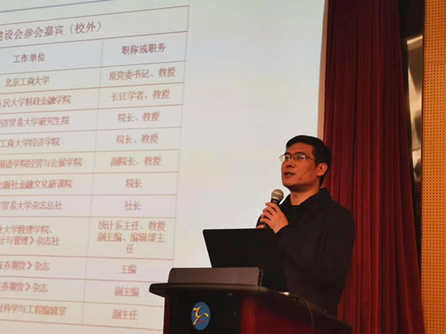 随后,首都经济贸易大学杂志总社社长牛志伟分享了期刊论文的创新及成果标准化的内容。首先,牛社长简单介绍了几个期刊的情况,杂志社主要有两本期刊:《经济与管理研究》和《首都经济贸易大学学报》,牛社长表示期刊和学者不仅是学术共同体,还是利益共同体。当前杂志社主要有两项工作,正在推进类似于青年学者争鸣的栏目和产业经济研究院的成立。此外,牛社长指出学术研究成果有几个要素需要注意:严密的理论框架严密、可靠的数据来源、有效的测量工具和完善的数据分析过程。年轻教师论文中经常存在的问题就是研究方向偏离实际以及数据来源不够可靠,并表示实际调研是最好的研究基础。