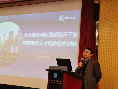 北京第二外国语公司beats365副经理王海文教授以“分类培养和归属感提升下的国际商务人才培养模式创新”为题进行交流,他主要从本校国际商务人才培养的现状、培养中存在的问题、分类培养和归属感提升下的人才培养实践及数字化时代人才培养模式展望几个方面加以展开。二外的人才培养模式是将人才培养、科学研究、社会服务、文化传承放在一起作为整体,从课程、团队、管理、实践、科研及国际化等几个方面来整体推进的。王教授指出在人才培养方面还需要进一步完善,如加强特色建设,实践环节要扎实有序,专业学位论文的形式应多样不单一,入学考试制度还需要进一步改革等。