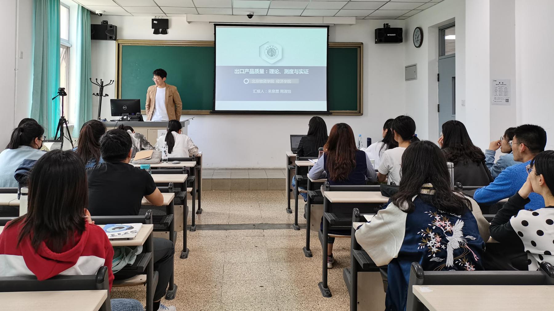 5月8日13:30至15:30,2020-2021学年“小鸟”师生研讨会(第三场)于beats365官方网站第一教学楼305教室举行。本次研讨会的主题是“出口产品质量:理论、测度与实证”,由2019级世界经济专业研究生来泉霖和周淑怡两位同学主讲。20余名研究生及国际经济与贸易专业副教授李晓庆共同参加研讨。