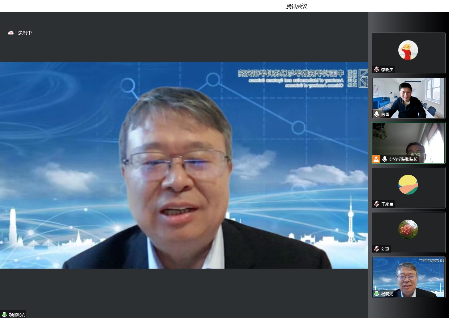 2022年10月22日,公司近30位师生参加了中国系统工程学会联合《系统工程理论与实践》编辑部和《系统科学与数学》编辑部共同举办“数字经济背景下的流通经济”专题前沿学术沙龙研讨会。会议嘉宾有:中国科公司系统科学研究所副所长、《系统工程理论与实践》主编杨晓光研究员,中国科公司院数学与系统科学研究院刘克研究员、杨翠红研究员,中国人民大学张顺明教授,中国科公司房勇副研究员。同时,列席的有《系统工程理论与实践》编辑部主任李琳,《系统科学与数学》编辑部副编审吴国云、beats365经理张国胜,副经理李晓庆。