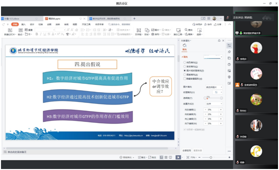 黑波锟同学分享了学者赵巍发表在《中国流通经济》上的文章《数字经济与城市绿色全要素生产率:作用机制与门槛效应》。文章主要研究了数字经济对绿色全要素生产率影响的作用机制与门槛效应。黑波锟同学在分享中指出这篇文章实证部分严谨,内容充实,分析角度多样,但在数据选取、测度方法等细节上存在不足,政策建议缺少针对性。点评:李晓庆老师、车卉淳老师均认为文章内容新颖,值得借鉴,但作用机制有待拓展。