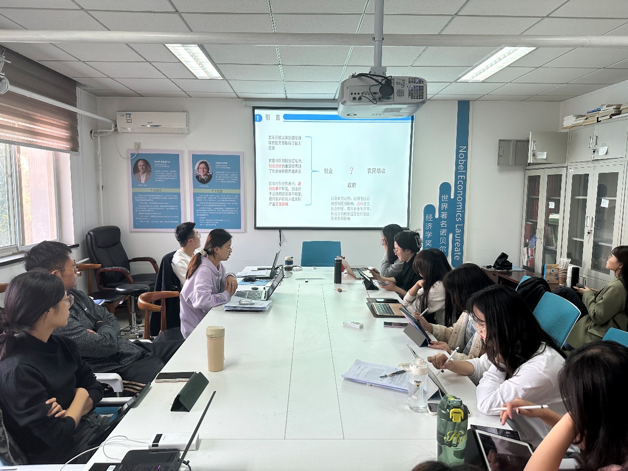 张晓芸同学分享的是林嵩等学者于2023年发表在《经济研究》上的文章“县域创业活动、农民增收与共同富裕——基于中国县级数据的实证研究”。本文利用2000—2017年中国1749个县级行政区的数据,对县域创业活动与农村居民可支配收入的关系进行了分析,发现县域创业有利于农民增收和缩小城乡收入差距。期间,周文韬老师提出了两个问题:创业活动由新注册企业数量衡量以及农村居民人均纯收入与社会消费品零售总额的比值选取是否合理。在场师生对此进行了深入的探讨。刘哲老师进行了点评。