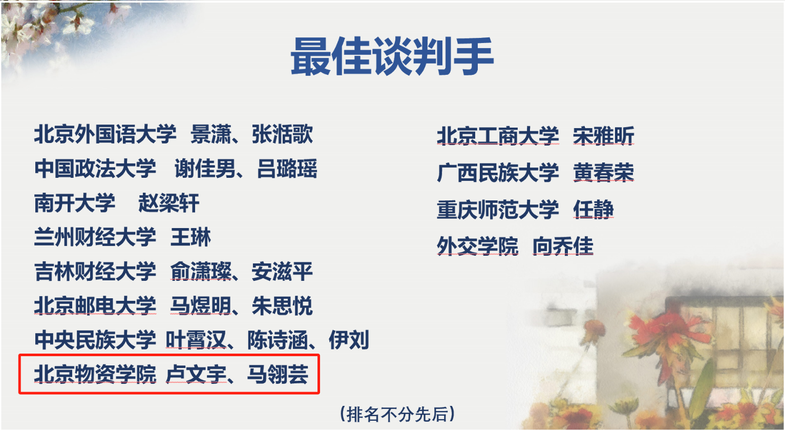 11月11日,2023年“未来国际商务(中文)谈判精英全国赛”总部精英赛(决赛)暨闭幕式在中国政法大学举行,在经历了数月激烈角逐后落下了帷幕,公司beats3653组选手代表公司参赛,分别斩获团体一等奖与三等奖,以及4名队员荣获最佳谈判手称号。