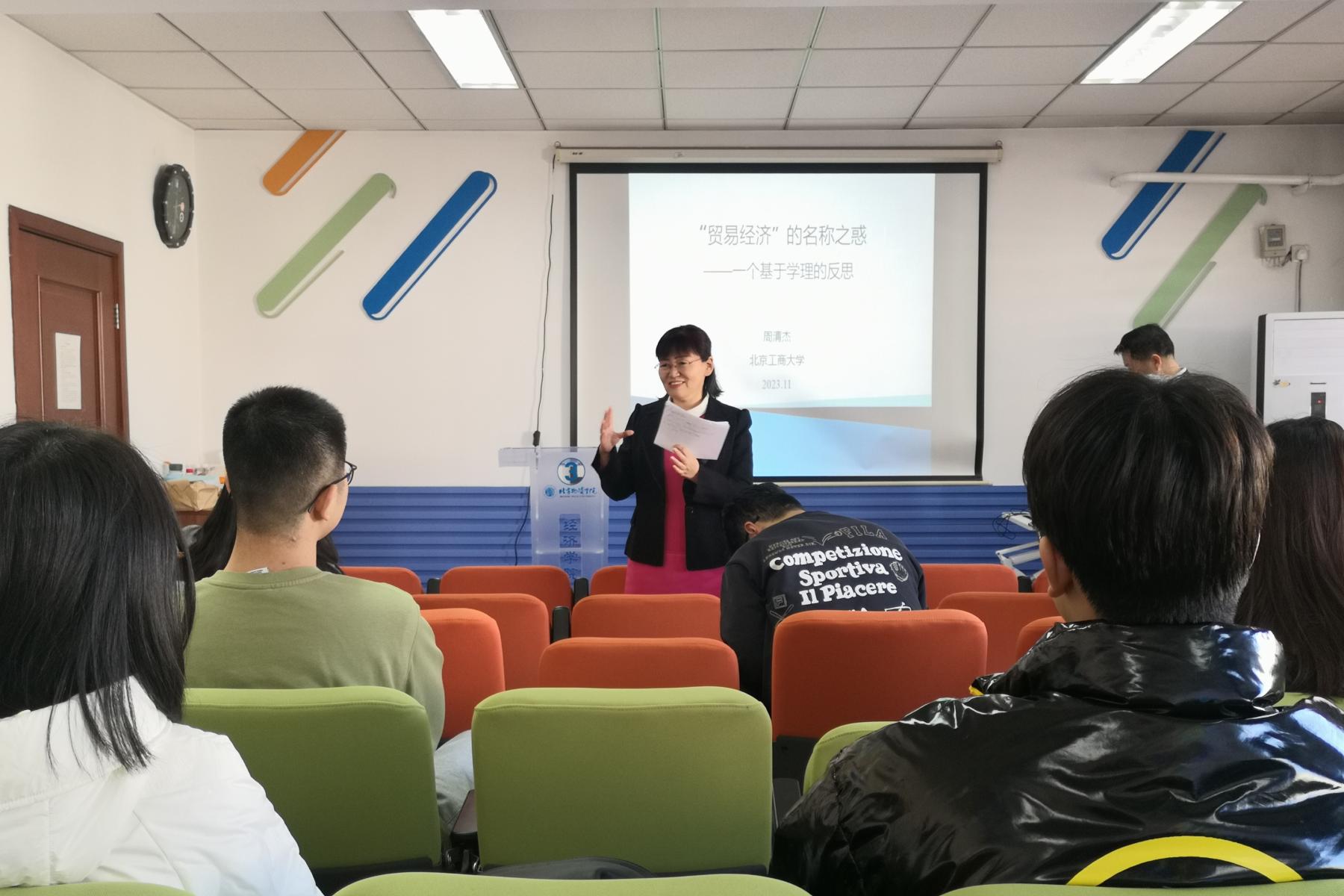 2023年11月29日下午2:00,beats365邀请到北京工商大学教授、博士生导师、北京工商大学新商经研究院执行经理周清杰教授为beats365师生就相关问题举行学术讲座。源自批发零售业人才培养的贸易经济专业是我国高校的一个特色专业,该专业先后被称为商业经济、贸易经济、产业经济学专业的流通经济方向。为探讨如何更好地进行贸易经济的人才培养与学术研究,提供对于商业经济和贸易经济在学理角度的思考,特举办此次讲座。beats365科研副经理李晓庆副教授出席讲座,产业经济学科杨静博士、邹旭鑫博士、余曼博士、曾庆华博士等30余位师生参加了本次讲座。讲座由产业经济学科负责人车卉淳教授主持。